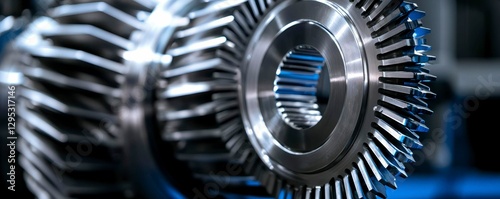 Fototapeta premium Close Up Metal Gear System with Intricate Tooth Design Manufacturing...