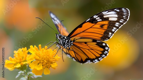 © Arjif, Fototapeta premium Close up monarch butterfly on yellow flower