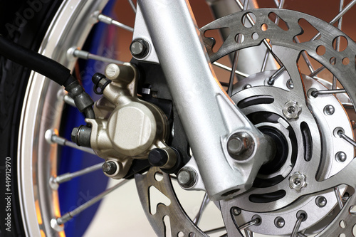 Obraz premium close up motorcycle front disc brake