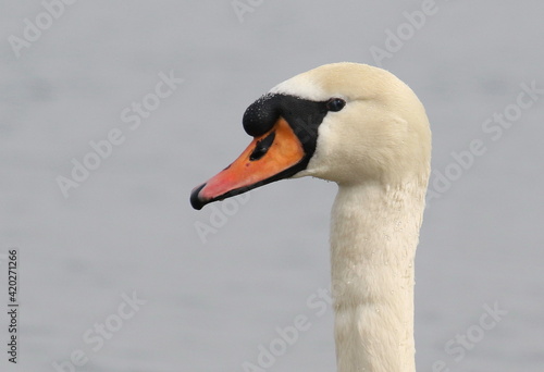 © dule964, Fototapeta premium Close up mute swan on blue river, cygnus olor