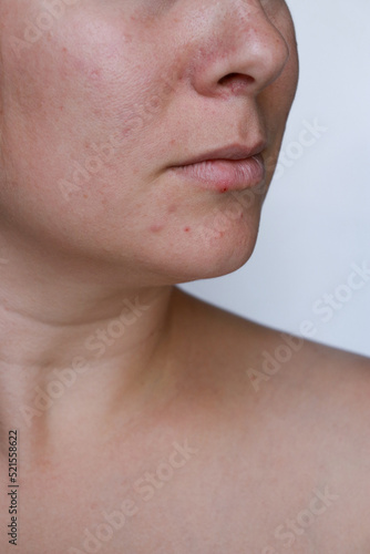 © TatjanaMeininger, Obraz premium close up natural woman bad acne skin with scars