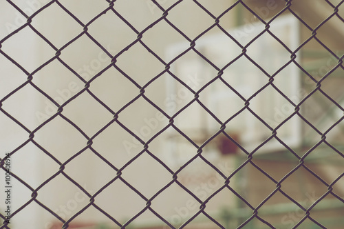Fototapeta premium Close up net with blur basketball hoop vintage style