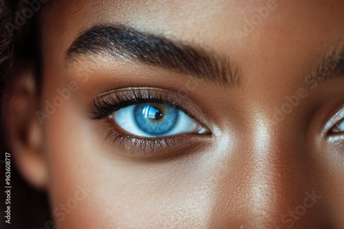 © JAYDESIGNZ, Obraz premium close-up of a african american woman with beautiful blue eyes and a beautiful natural eyebrow