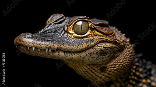 © Pic, Obraz premium Close-up of a baby alligator's head with a golden eye.
