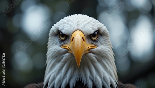 © Abdul, Obraz premium Close-Up of a Bald Eagle Displaying Piercing Eyes and Majestic Features. generative AI