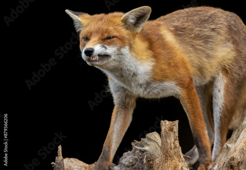 © Sarah, Fototapeta premium Close up of a beautiful fox eating with black background