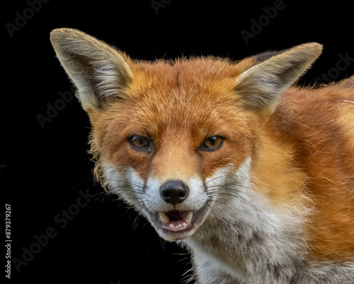 © Sarah, Fototapeta premium Close up of a beautiful fox eating with black background