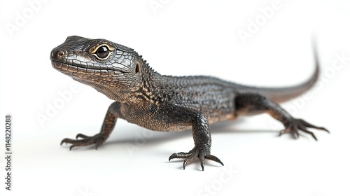© Theeranan, Naklejka premium Close-up of a Beautiful Scaly Lizard with Intricate Skin Patterns on a Bright White Background for Nature and Wildlife Enthusiasts