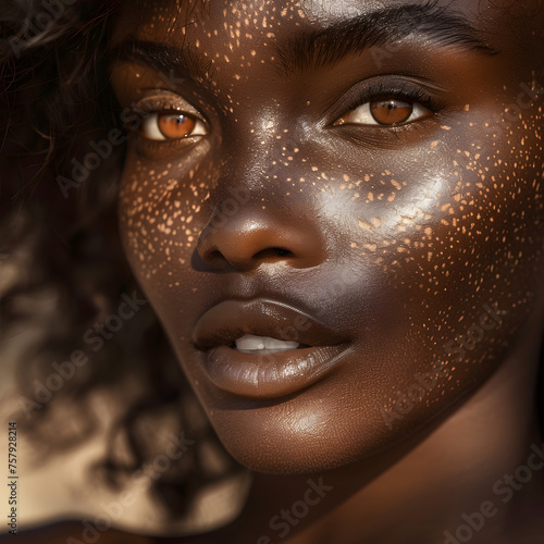 Fototapeta premium Close-Up of a Beautiful Suntanned Black Woman's Face generative ai