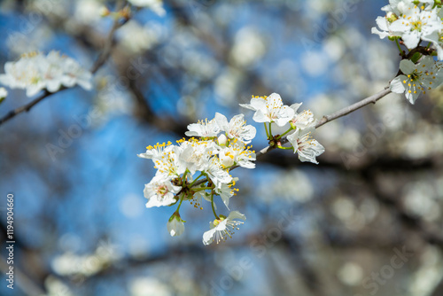 © Krasimira Dragneva, Obraz premium Close-up of a beautiful tree with blooming white flowers in spring