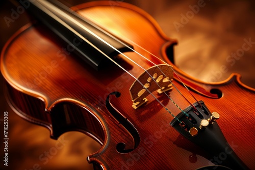 Fototapeta premium Close-Up of a Beautiful Violin Showcasing Intricate Craftsmanship and Vibrant...