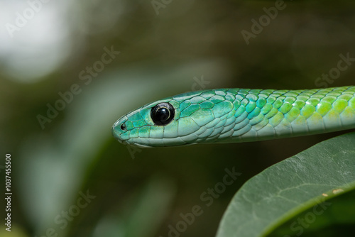 Obraz premium Close-up of a beautiful Western Natal Green Snake (Philothamnus occidentalis)...