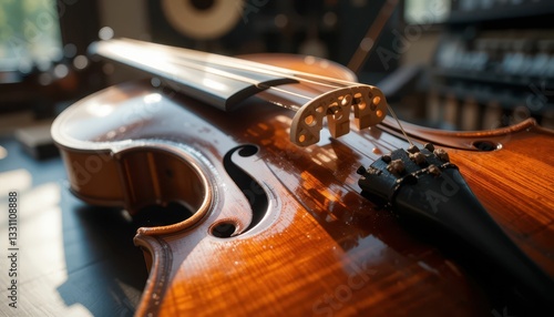 © Kitta Studio, Fototapeta premium Close-up of a Beautiful Wooden Violin in Natural Light
