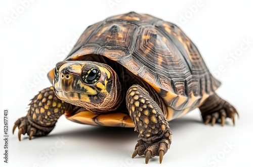 © ANUAR, Fototapeta premium Close-up of a Beautifully Patterned Turtle Crawling on a Light Background with Sharp Details Showcasing Unique Shell and Features