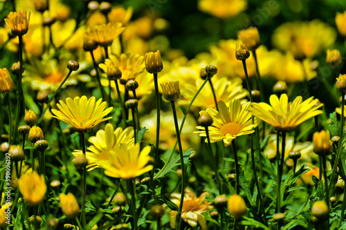 © Dee, Obraz premium Close up of a bed of yellow Asters