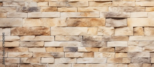 Fototapeta premium Close up of a beige rectangle brick wall with a rock pattern, building material