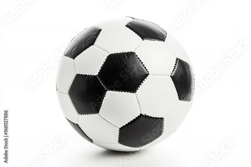 Obraz premium Close up of a black and white soccer ball on a plain white background in a...