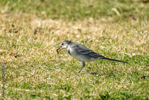 © Kristian, Fototapeta premium Close-up of a black-backed wagtails walking in the grass
