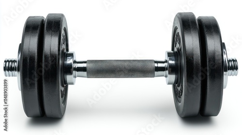 © mochalfin, Fototapeta premium Close-up of a black dumbbell with chrome handles isolated on white.