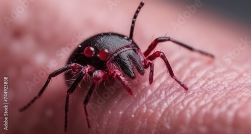 © vivekFx, Fototapeta premium Close-up of a black spider with red markings on a pink background