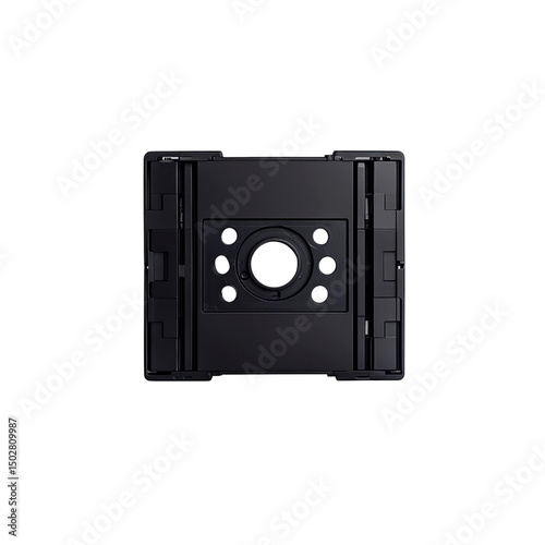 © Tike, Obraz premium Close-up of a Black Technological Device with Central Aperture and Sliding Mechanisms