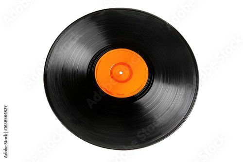Obraz premium Close-up of a black vinyl record with an orange center label