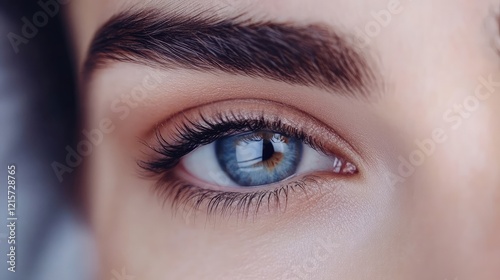 Obraz premium Close up of a blue-eyed female model receiving microblading eyebrow procedure...