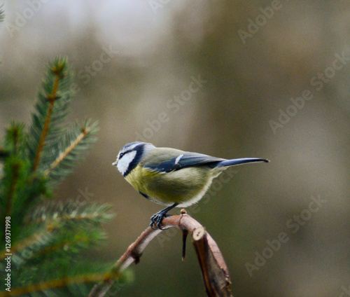 Obraz premium Close-Up of a Blue Tit Sitting on a Twig