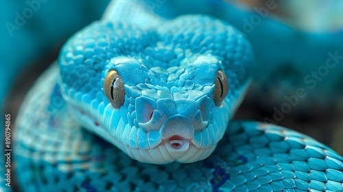 Fototapeta premium Close-up of a blue viper snake face
