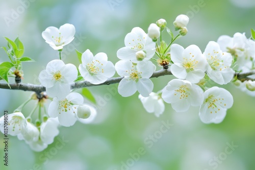 Fototapeta premium Close up of a branch of a tree with white flowers - Nature
