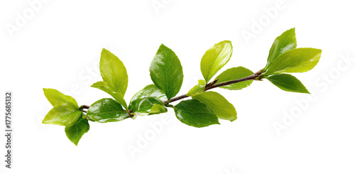 © Adri, Fototapeta premium Close-up of a branch with several bright green leaves