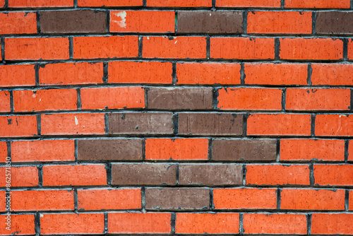 Obraz premium Close up of a brick wall with a unique pattern of orange and brown bricks, texture, background.