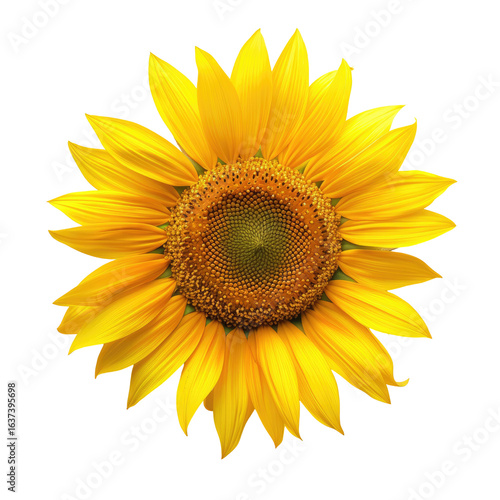 © ahmad, Fototapeta premium Close-up of a bright yellow sunflower against a black background. Distinct, detailed petals radiate from a central, dark-green/brown disk