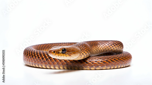 © Visual Aurora, Obraz premium Close-up of a Brown Snake against a white background.
