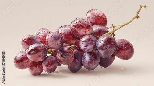 © Nanang, Fototapeta premium Close-up of a bunch of red grapes covered in water droplets, against a light beige background