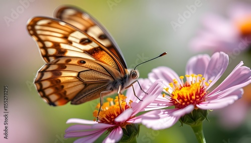 © Masaji, Fototapeta premium Close-up of a butterfly feeding on a vibrant pink flower