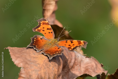 Obraz premium Close-Up of a Butterfly Landed on Fall Leaves