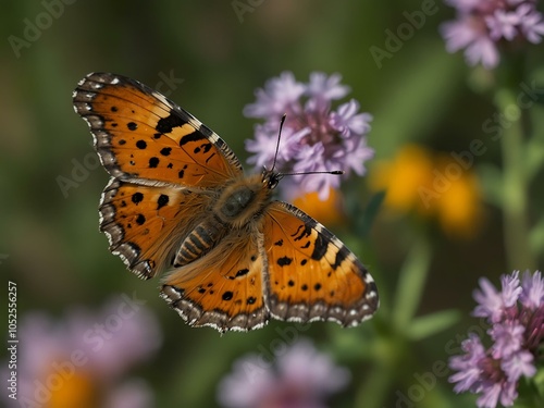 Obraz premium Close-up of a butterfly on a wildflower.