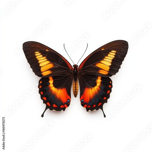 © Jamrote, Fototapeta premium Close-up of a butterfly with orange and black wings (1)