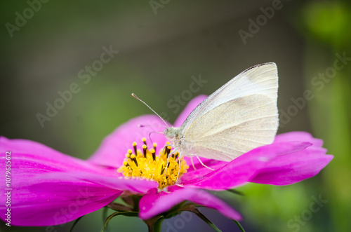 © Nathan McClunie, Naklejka premium close up of a cabbage white butterfly on a flower