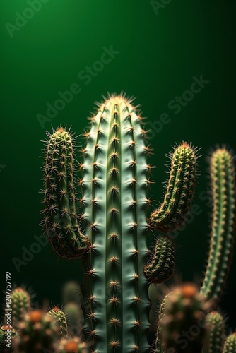 © Popi, Naklejka premium Close-up of a cactus plant against a green background.