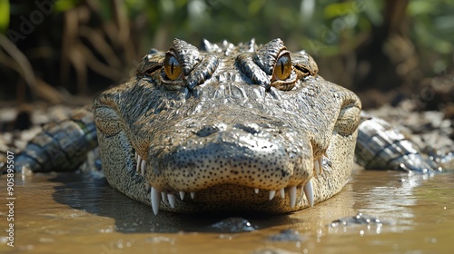 Obraz premium Close-up of a Caiman in Shallow Water