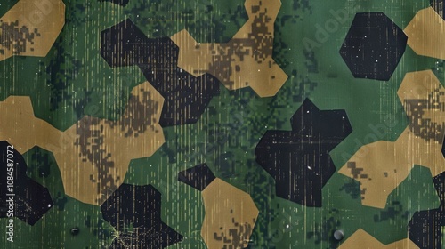 © Ева Поликарпова, Obraz premium Close-up of a camouflage pattern on a wall, great for military-themed designs or outdoorsy projects