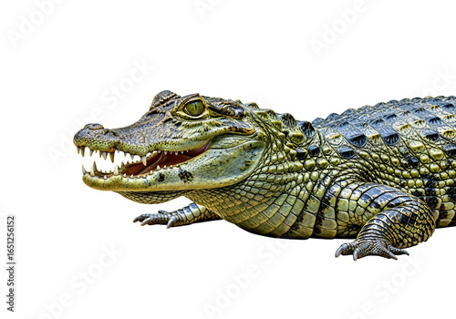 Obraz premium Close-up of a captivating young crocodile, showcasing its intricate,...