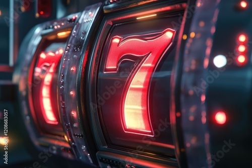 Obraz premium Close-up of a casino slot machine with lucky 7s