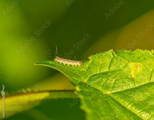 © Paringi, Obraz premium Close-up of a caterpillar on a leaf (1)