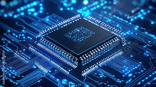 © Almahyra, Fototapeta premium Close-up of a central processing unit (CPU) on a circuit board. (2)
