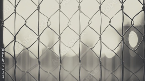 © musa, Fototapeta premium Close-up of a chain-link fence with blurred city background.