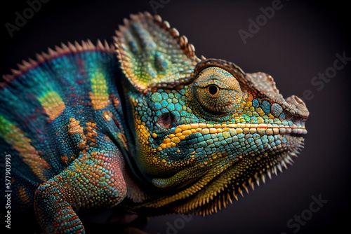 © nonblok, Obraz premium Close up of a chameleon with a black background. Generative AI, Generative, AI