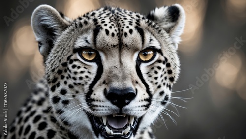 © DEER FLUFFY, Obraz premium Close Up of a Cheetah's Face with Open Mouth